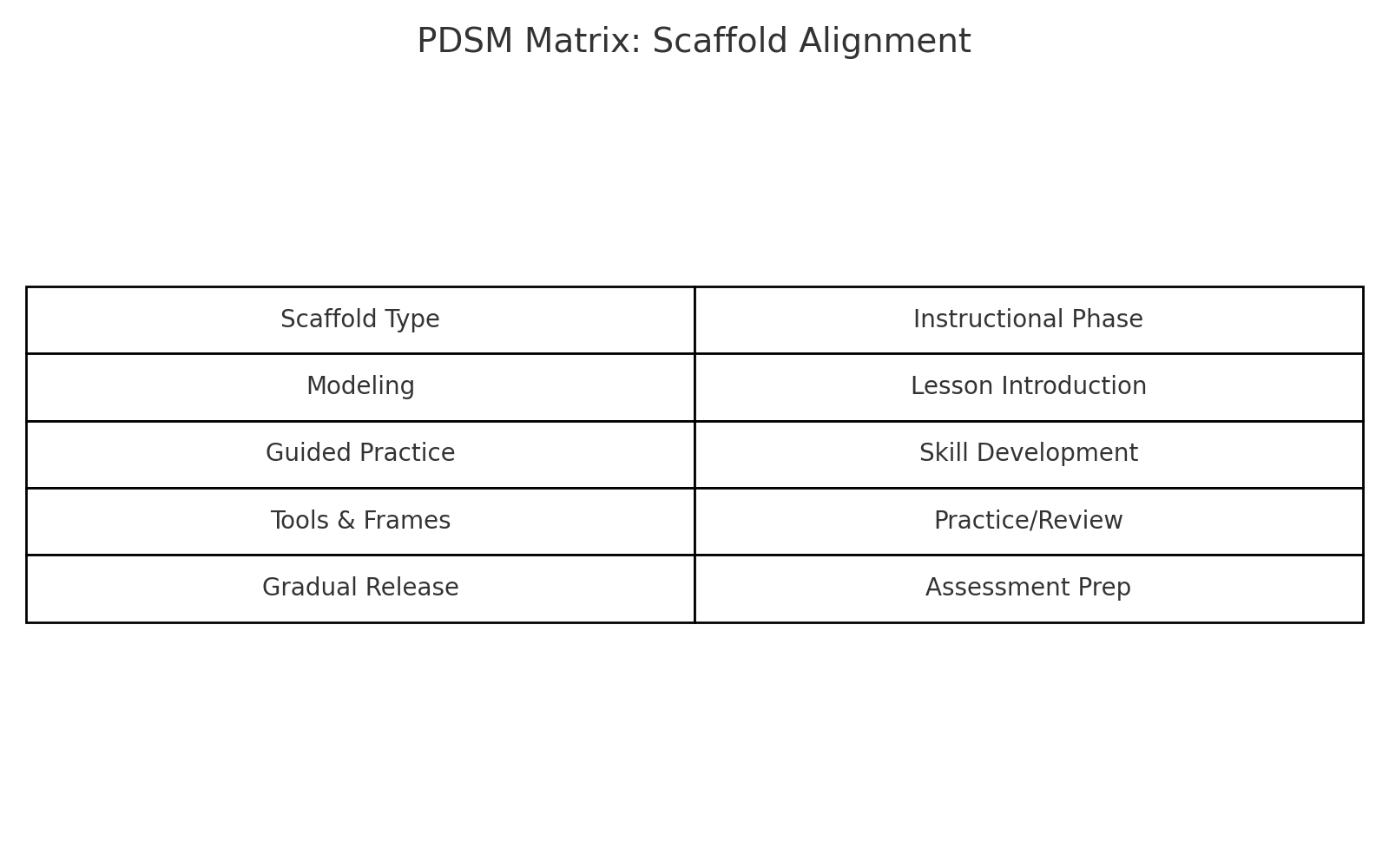 3️⃣ PDSM Matrix – Scaffold Types by Lesson Phase